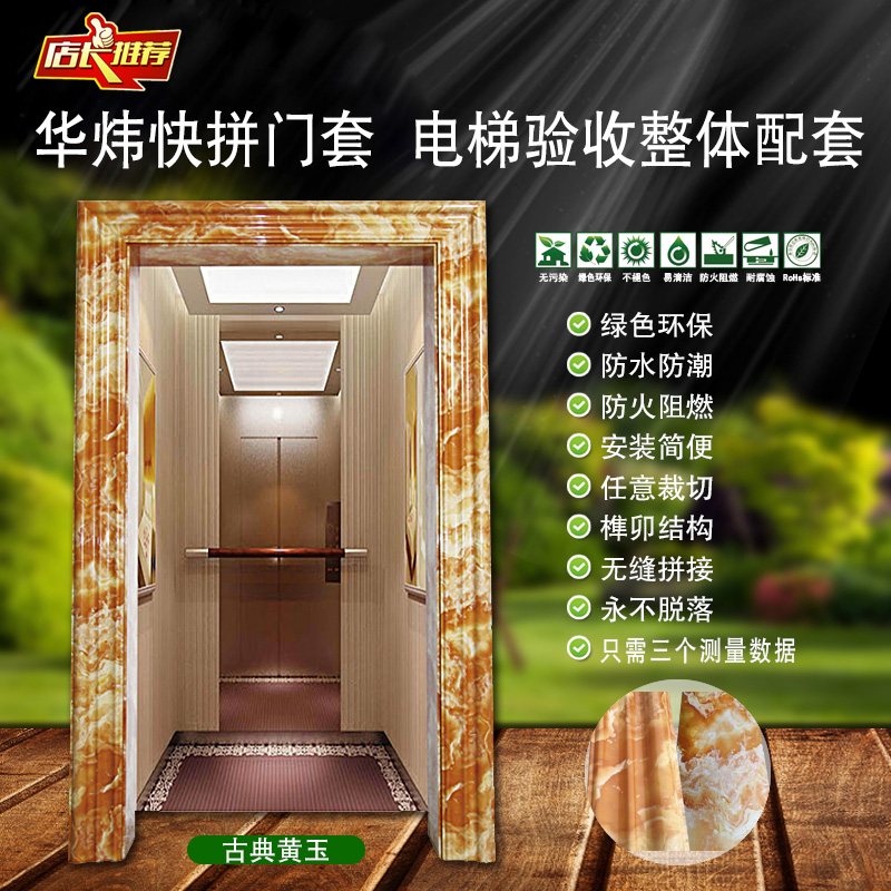 電梯門套已通過國際標(biāo)準(zhǔn)UL94-2013阻燃檢測和鉛、汞、苯等六種重金屬含量檢測,完全符合國家環(huán)境保護(hù)要求。適合用于家庭、辦公室、行政樓、賓館、飯店、酒吧、KTV、休閑會(huì)所、醫(yī)院等場所的裝飾工程??芍苯影惭b在毛胚墻面,減少了施工成本,前期只需簡單測量三個(gè)數(shù)據(jù),提高施工效率。安裝后流光溢彩、富麗堂皇、雍容典雅,大幅度提升樓宇品質(zhì)。